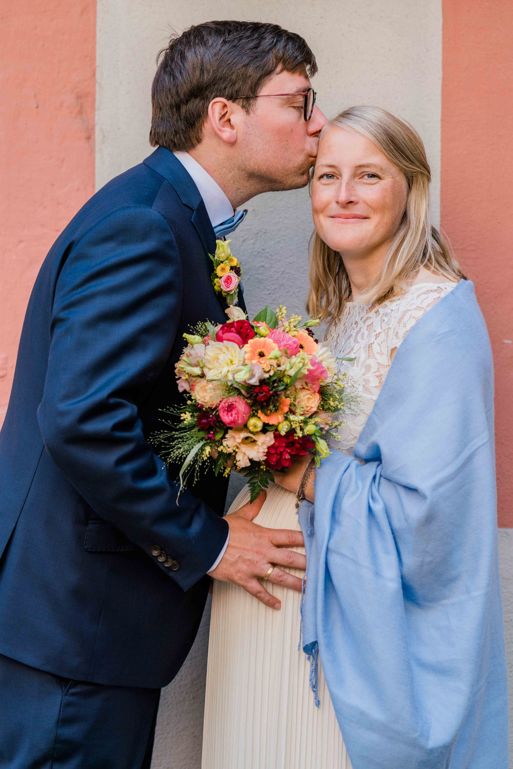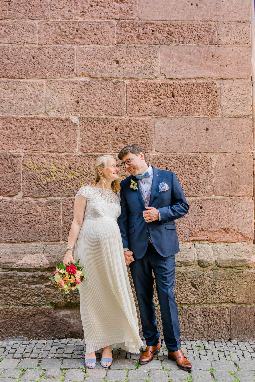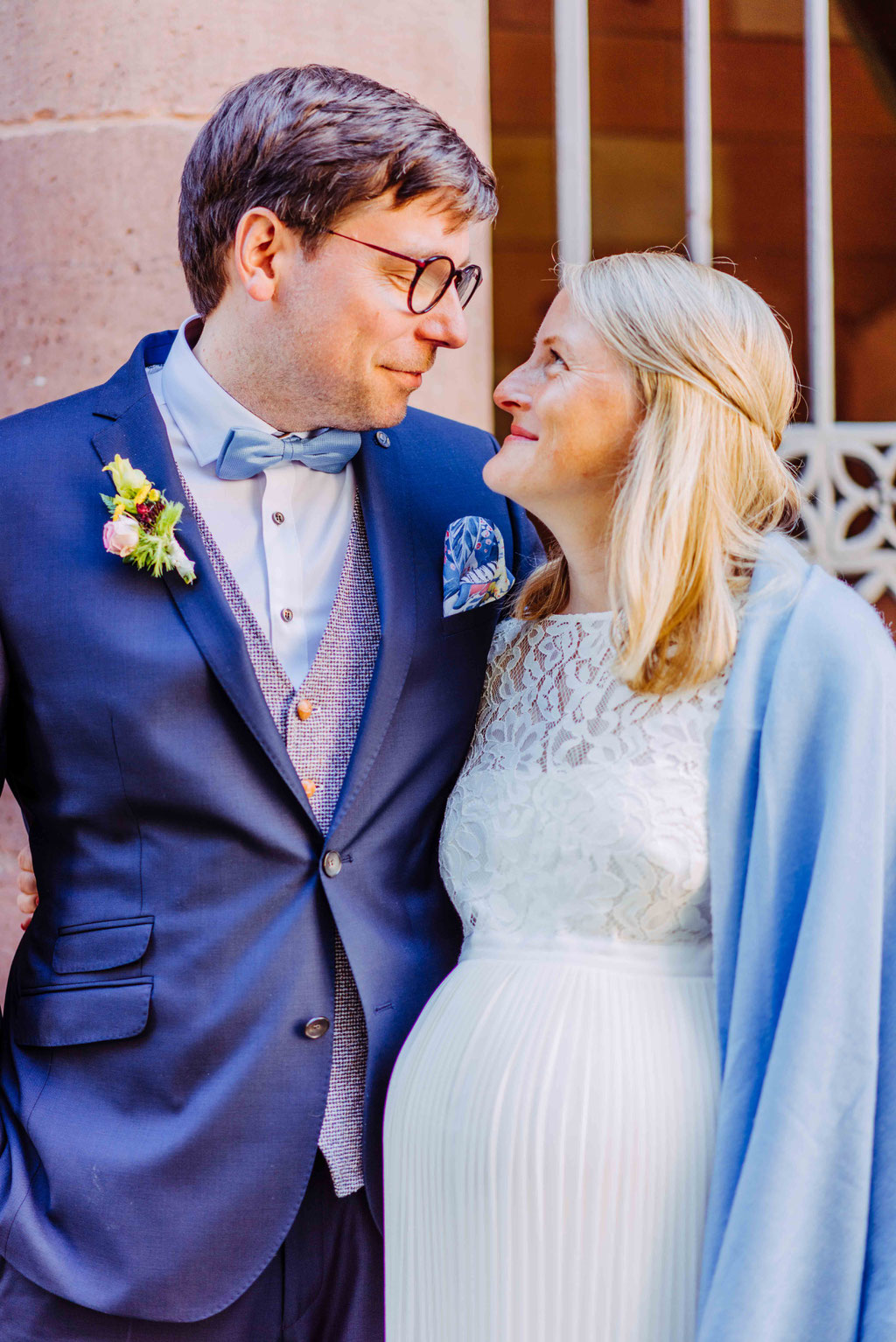Ganz kurzfristig fragte die liebe Wiebke für ihre standesamtliche Trauung in Neustadt an der Weinstraße bei mir an. Die Nachricht der beiden klang gleich so sympatisch und nett, dass ich mir extra für ihren besonderen Tag freigenommen habe. Voller Glück haben die beiden an ihrem Hochzeitstag gestrahlt und konnten noch einmal die traute Zweisamkeit genießen. Denn unter Wiebkes süßem Hochzeitskleid war es gar nicht möglich, die große Babybauchkugel zu verstecken :-).